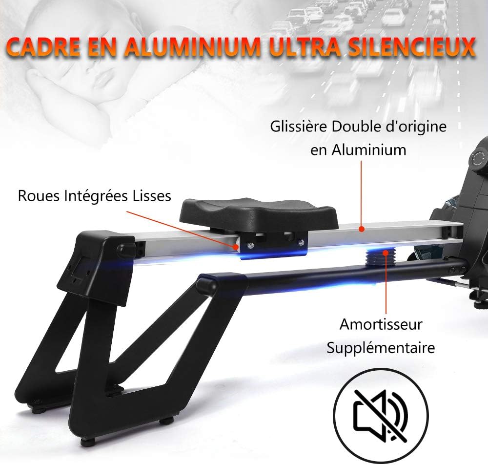 Ce rameur va être séparé en 2 colis. L‘un des colis est peut-être en retard à livrer, veuillez attendre 2-3 jours avec patience.Roulettes de transport pour faciliter son déplacement. Position du siège réglable, notre rameur peut prendre en charge des personnes dont la hauteur est comprise entre 1.5 – 1.9 m.